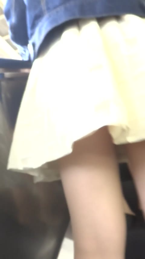 パンチラ盗撮 女子大生 白パンツ全開 超ミニスカを逆さ撮り