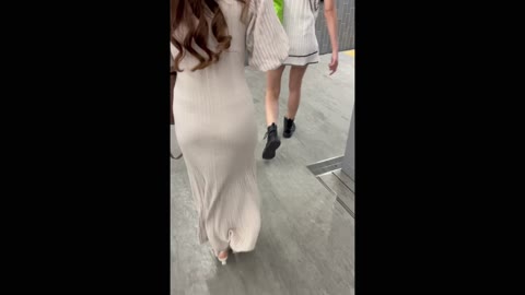 「魅力的な揺れ動き!グレーのマキシ丈ワンピ美女(1名)」