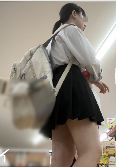 JKお宝#93 黒髪ポニーテール生パンJKを粘着撮り