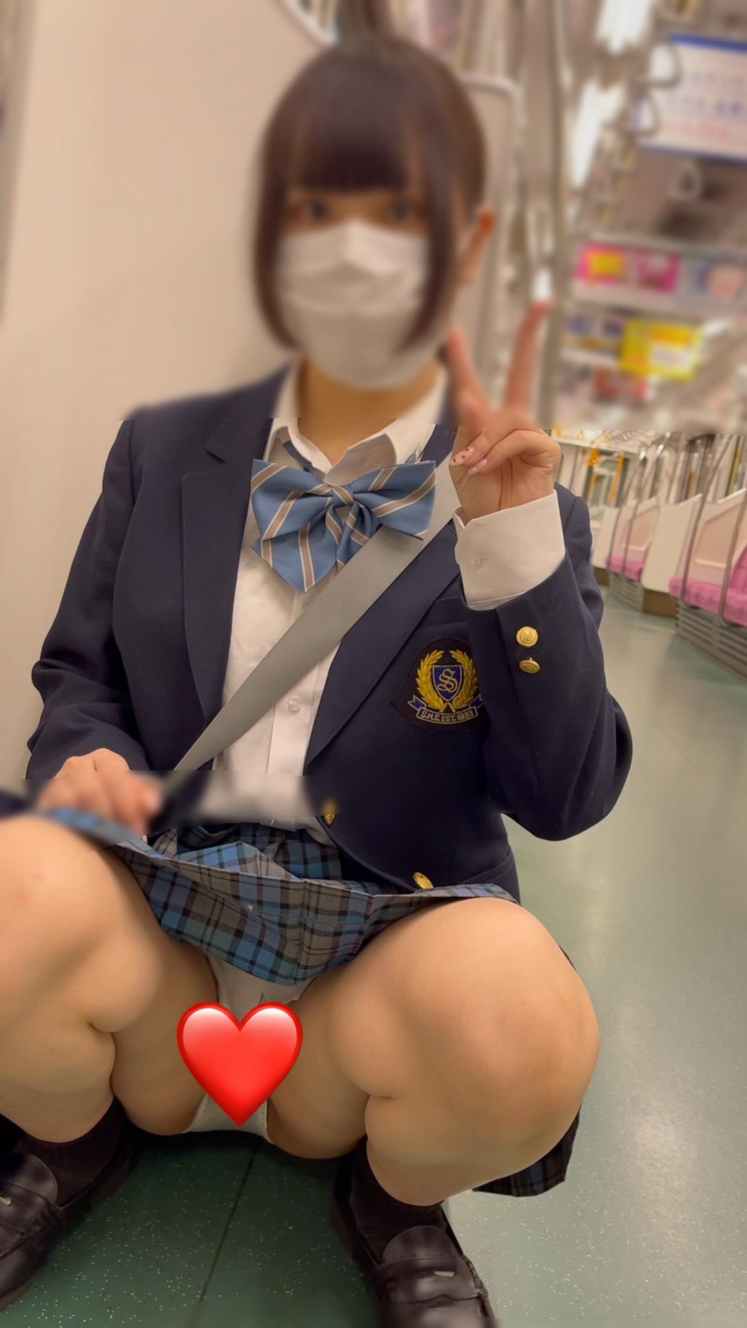 JK盗撮日記48 青チェック激カワミニスカ美脚JKアイドルを電車ボックス席とトイレ内で盗撮【カメラ目線対面バレ・パンチラ交渉有り