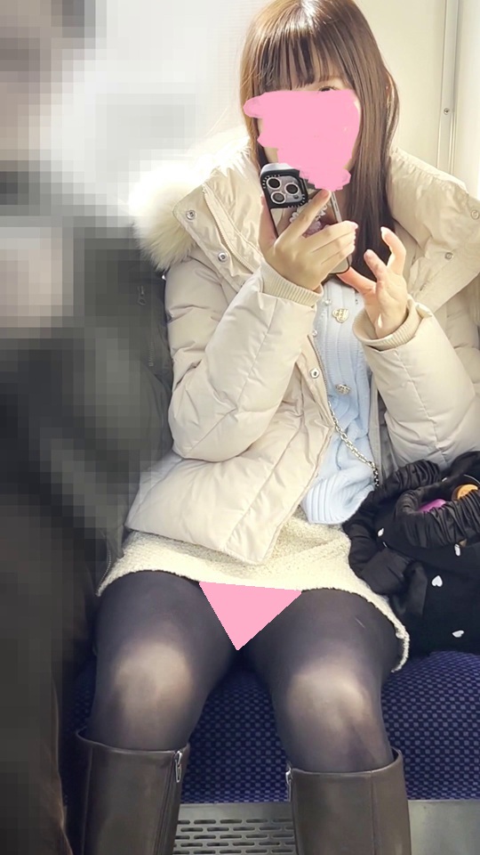 彼氏の横で黒スト越し水色パンティを見せてしまう美人!!