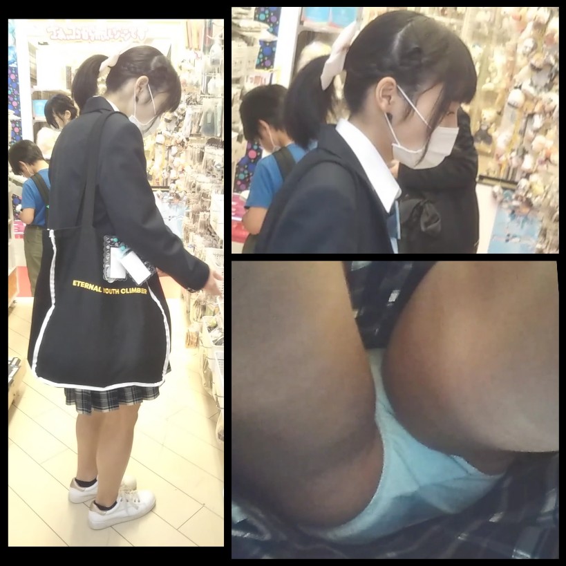 二名セット★黒髪ロングの超美少女と制服少女☆ミニスカ内部のはみ出すシートを直下撮り★逆さ撮り