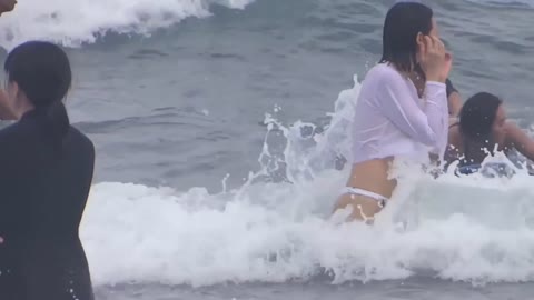 【令和初】 海ではしゃいで半ケツTシャツスケスケ