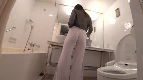 【着衣:フレアパンツ&バックスリットスカート】《番外編》激エロ外資系OLがボディライン丸出しの激エロ白系コーデで目立ちまくりw