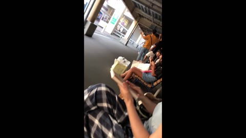 電車でご飯を食べるマナーのなってない制服J○パンチラ