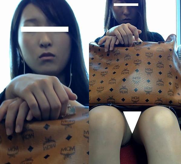 (電車対面)(顔出し)極ミニタイトスカートで攻める美人女子大生さん…お鞄の下に隠れる魅惑の▼ぞーんにフォーカス!!